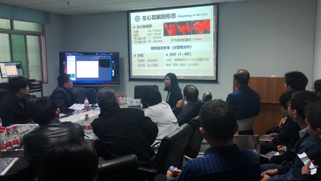 作为左心耳封堵手术的“眼”,经食道超声(TEE)在手术中发挥着至关重要的指导作用,从而确保手术安全可控。此次培训,周青教授作为超声经验丰富的专家,与医生同道们分享了其在TEE指导下采用LAmbre™进行左心耳封堵术的经验。周教授深入剖析了围术期TEE检查要点,重点分享了其在TEE下进行左心耳形态判断、开口大小测量、封堵效果评估、并发症监测方面的心得体会,令在座的同道们受益匪浅。讨论环节中,现场学术氛围浓郁,彼此在交流中积累经验,为提供给患者更精准的手术治疗打下基础。