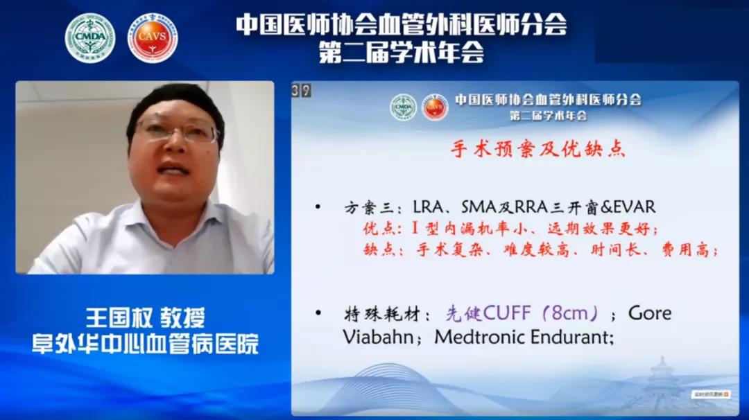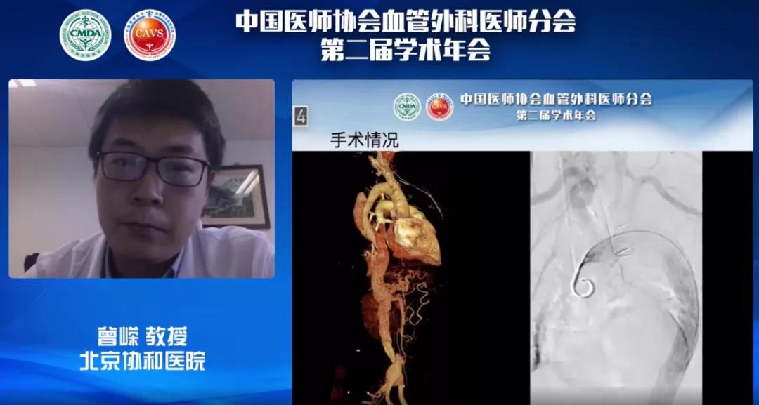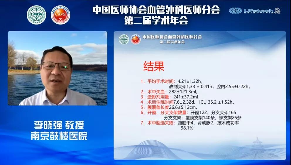 首先李晓强教授就《涉及腹腔重要分支的主动脉夹层动脉瘤——全腔内修复的思考》,与大家分享了其所在中心应用Ankura™胸主动脉覆膜支架治疗累及腹腔内脏重要分支的夹层动脉瘤的丰富经验。李教授表示,随着腔内技术的不断发展,利用全腔内修复技术治疗累及内脏区的主动脉病变已成为可能。同时,李教授强调,在涉及腹腔内脏的胸腹主动脉夹层病例中,假腔的重塑较为复杂,影响因素较多,因此腔内修复时需注意真腔较小、多腔的情况,同时需要特别注意对术中、术后截瘫的预防。