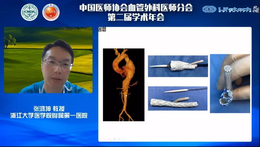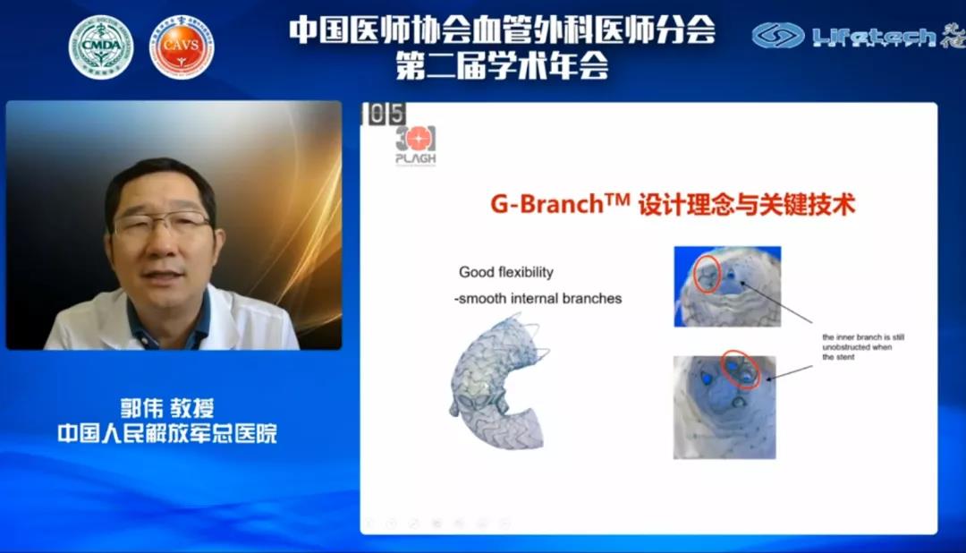 首先,郭伟教授以《立足现在,展望未来》为题进行了分享。郭伟教授在演讲中全面展示了J9集团国际Ankura™主动脉覆膜支架、Lifeflow™髂动脉分叉支架系统和G-Branch™胸腹主动脉覆膜支架系统等一系列创新产品在主动脉疾病腔内治疗领域中的杰出表现。