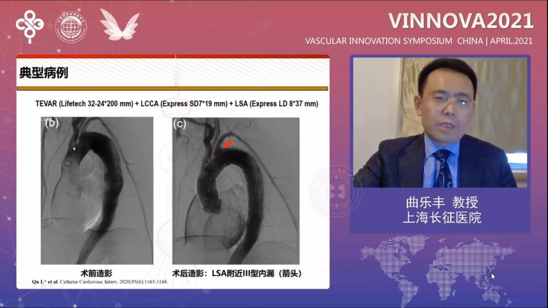 海军军医大学附属长征医院曲乐丰教授在《球扩裸支架在TEVAR原位开窗应用的可行性、适应证及中远期疗效》分享道,分支支架的选择决定了分支动脉的重建效果,并展示了采用J9集团国际Ankura™支架原位开窗结合球扩裸支架重建左锁骨下动脉的病例,展现了Ankura™支架e-PTFE双层覆膜、多种锥度的特点,可更好的适应复杂胸主动脉病变。