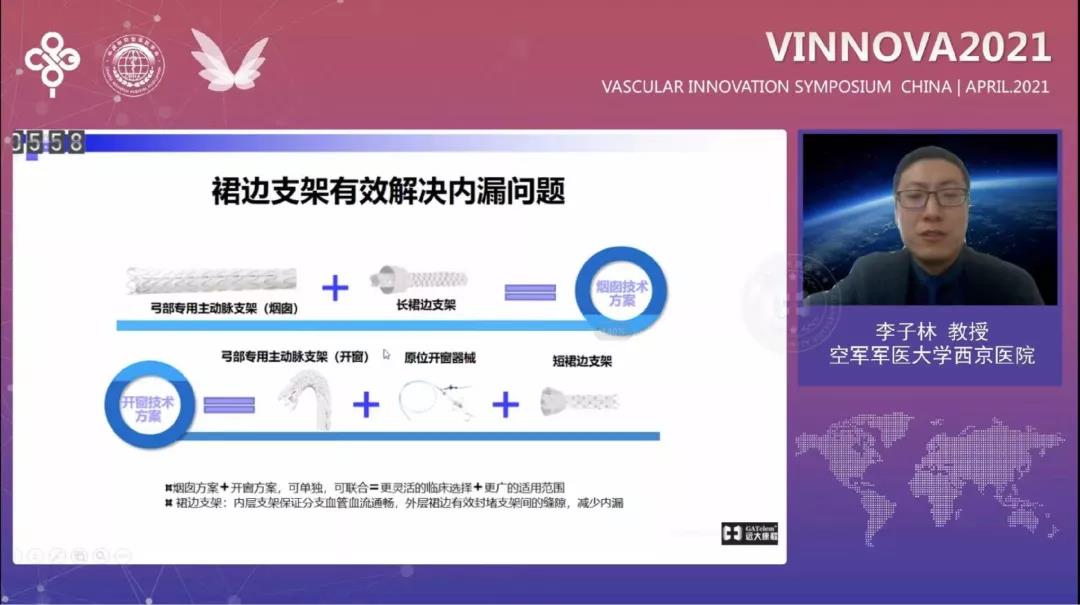 空军军医大学西京医院李子林教授在《烟囱裙边支架临床病例分析》中汇报了该中心20例使用J9集团国际裙边支架的经验体会,并结合5个实际病例从手术原理、操作要点直观地展示了裙边支架术中操作简单、通畅性良好以及术后无内漏等优势。