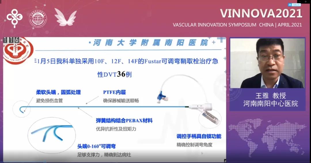 河南南阳中心医院王雅教授《可调弯鞘在下肢深静脉血栓形成取栓术的应用》分享了Fustar™可调弯鞘在其中心治疗36例DVT病变的经验。Fustar™可调弯鞘联合导管取栓技术,在减少抽吸时间的同时降低了并发症发生率;其头端0-160°可调弯设计能提供足够支撑力,精确到达病灶,取栓效率高,血栓清除率高。此外,可调弯鞘柔软头端和内膜PTFE涂层的特点可以使其避免损伤血管,确保器械的顺畅输送。