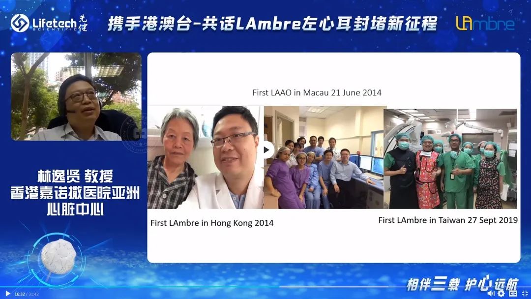 香港嘉诺撒医院亚洲心脏中心的林逸贤教授作为最早在亚洲开展左心耳封堵术的专家,在发言中回顾了其于2009年以来,深耕左心耳封堵领域十余载的心得体会。林教授表示,LAmbre™左心耳封堵器系统已在海内外拥有了丰富的临床验证,它为临床专家提供了一种安全、有效的房颤卒中防治手段。林教授对LAmbre™的发展寄予厚望,期待未来更多的循证医学证据进一步证明LAmbre™的临床优越性。