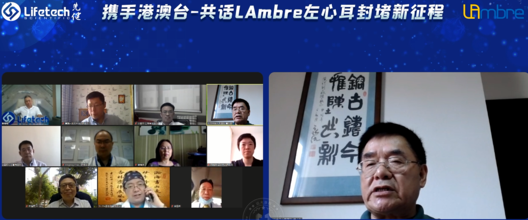 本次学术盛会由武汉大学人民医院黄从新教授与香港嘉诺撒医院亚洲心脏中心林逸贤教授担任会议主席,武汉大学人民医院黄鹤教授担任主持,邀请到20余名临床专家分享各自对LAmbre™左心耳封堵器系统的临床应用经验。本次活动全程采用线上直播的形式,吸引了近万人次点击观看,获得了超过120家中心的关注。
