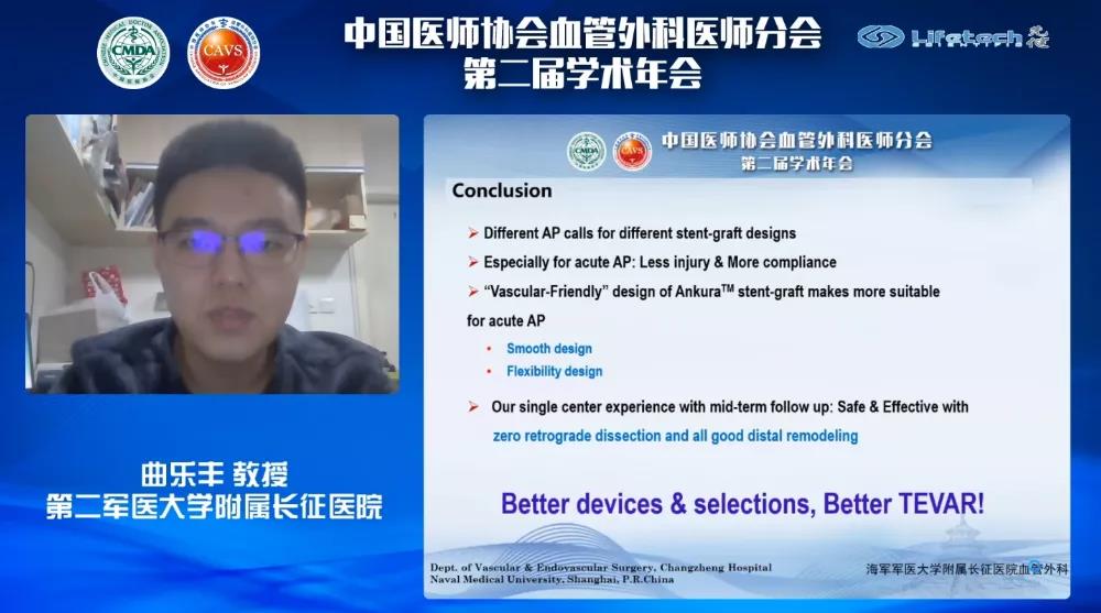 曲乐丰教授团队的吴鉴今医生以《Perfect TEVAR with ANKURA-我的思考与策略》为题分析了2013年至2016年期间126例胸主动脉病变治疗研究中,Ankura™胸主动脉覆膜支架在TEVAR(胸主动脉腔内修复术)中的临床应用优势。吴医生表示,不同类型的主动脉疾病需要针对性的支架设计,Ankura™采用双层e-PTFE覆膜,即刻封堵效果出色;其“血管友好型”设计,具有更好的顺应性和最低的血管损伤;多种锥度设计,可适应各种主动脉夹层病变的解剖形态。研究结果表明,Ankura™支架独特的产品特性和设计理念,针对慢性和急性主动脉病变的临床应用安全有效。