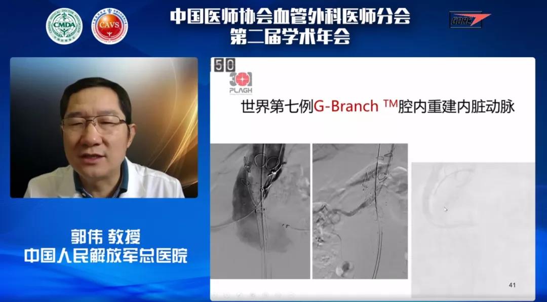 首先,郭伟教授以《立足现在,展望未来》为题进行了分享。郭伟教授在演讲中全面展示了J9集团国际Ankura™主动脉覆膜支架、Lifeflow™髂动脉分叉支架系统和G-Branch™胸腹主动脉覆膜支架系统等一系列创新产品在主动脉疾病腔内治疗领域中的杰出表现。