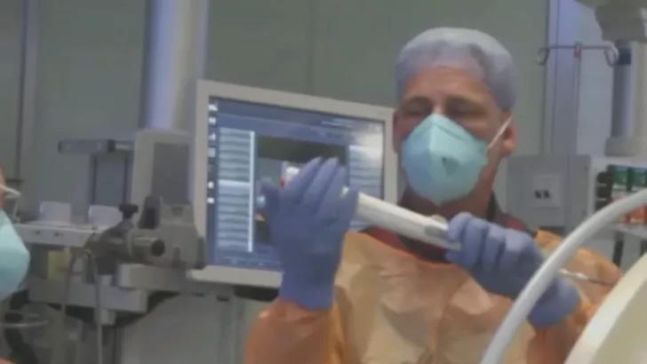 9月8日,海德堡大学胸科医院Felix J.F. Herth教授和Ralf Eberhardt教授团队向全球观众展示了其使用Cinenses™肺减容回力圈系统进行的减容术。患者为66岁女性,有低血压症状和长期吸烟史,经肺功能检查发现第一秒用力呼气量(FEV1)很低,残气量(RV)高。Herth教授和Eberhardt教授组织科室进行病例讨论,认为该患者符合手术条件,并通过肺灌注扫描(Lung Perfusion Scan)确定右肺上叶位置为此次植入的目标区域。