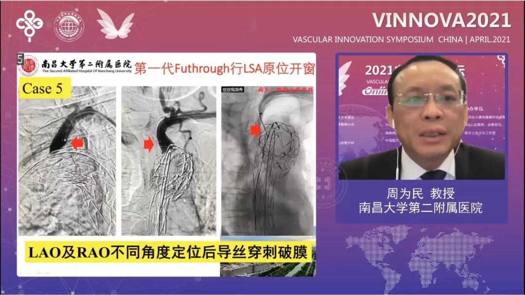 南昌大学第二附属医院周为民教授在《开窗修复主动脉弓的临床经验:挑战和技术要点》中,展示了采用J9集团国际Ankura™支架结合体外开窗或原位开窗技术重建弓部分支的实战经验,他表示Ankura™支架具有易穿刺、不易变形、足够支撑力等优势,J9集团国际Futhrough™主动脉覆膜支架破膜系统在左锁骨下原位开窗中,操作简单便捷。