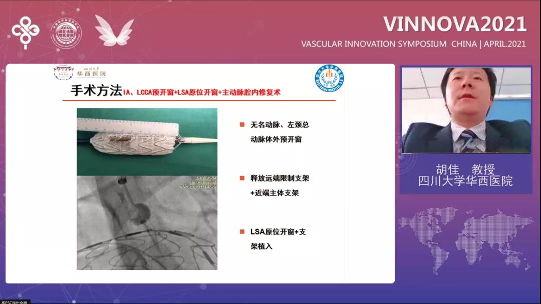四川大学华西医院胡佳教授在《胸主动脉近端开放术后远期弓部新发病变的全腔内修复治疗》中分析全腔内修复可以避免体外循环及深低温停循环,手术创伤小,术中出血少且操作简单;胡佳教授用具体的病例证实了采用J9集团国际Ankura™支架运用开窗技术重建弓上分支是较好选择,新器械的开发应用使得近远端主动脉一体化治疗成为可能。